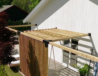 Önskar du tak eller ribbvägg till din pergola? Lätt ordnat! Detta bygger du enkelt med vårt beslag som är anpassat för träregel 45x95mm. Du kan välja att montera reglarna rakt eller vinklade för att skapa precis det utseende du föredrar på din pergola. Avståndet mellan träreglar i tak eller vägg väljer du själv, beroende på hur mycket skugga eller insyn du vill ha.