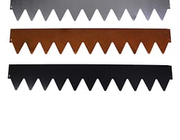Rabattkanterna finns i tre färger; galvat, svart och trögrostande corten. Förzinkad plåt ger ett bra skydd mot rost och lacken är en väderbeständig pulverlack för utomhusbruk. Rabattkanten i corten får sin rostiga yta först efter en tid utomhus. Vi rekommenderar att den svartlackerade kanten böjs varsamt och ej i skarpa 90 graders hörn. Detta då risken finns att färgen spricker.