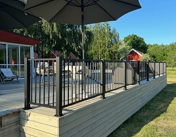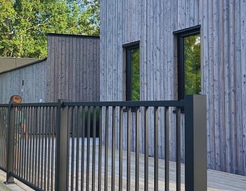 Herrestad är ett enkelt men elegant staket med stående ribbor. Då det inte är klättringsbart gör det sig extra bra som poolstaket, men kan såklart användas som både trädgårdsstaket och altanräcke.