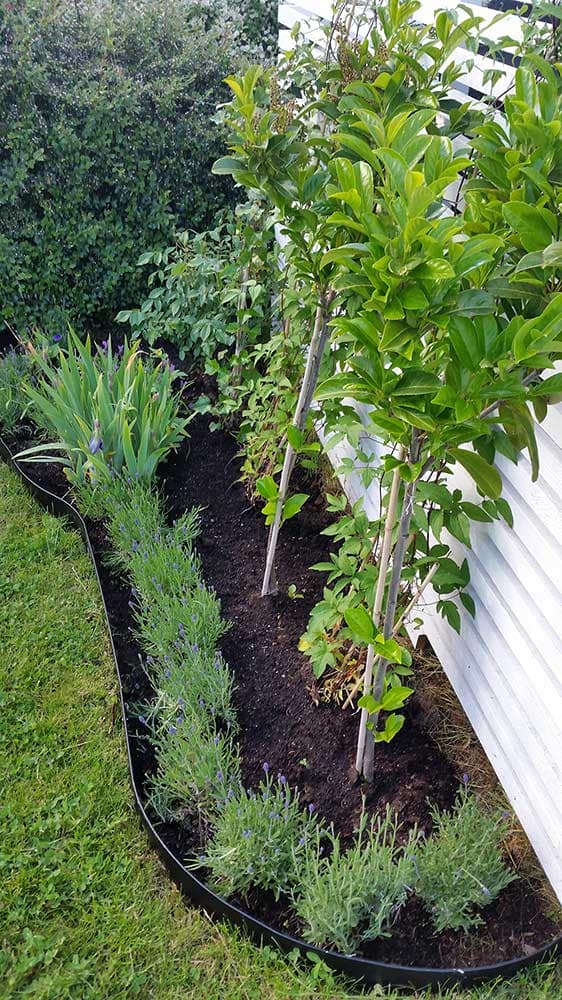 Nedan följer några bilder tagna från en kunds trädgård. Hon gav sina rabatter en uppfräschning i form av vår höga rabattkant i svart.