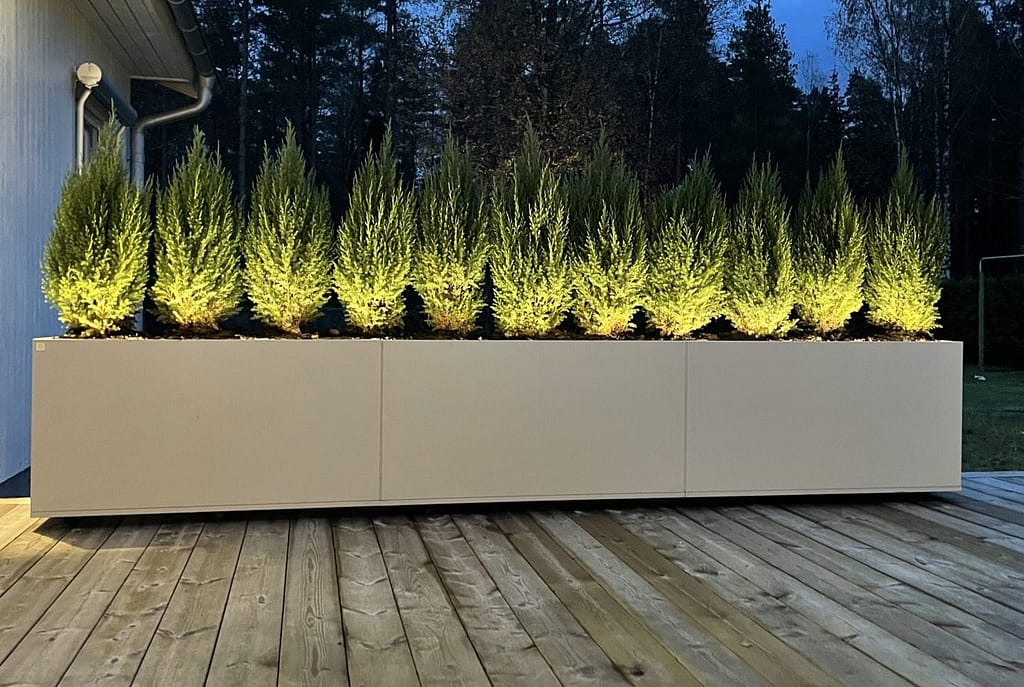 Varje säsong bär med sig unika möjligheter när det kommer till belysning. Under sommarmånaderna har vi fördelen av långa ljusa kvällar, där solnedgången ofta står för skådespelet. Men när hösten och vintern anländer, får vi ta saken i egna händer. Förutom den mångsidiga Ljuseveka, som tack vare sin robusta konstruktion och väderbeständiga utomhuslack står emot de kallare månaderna, finns andra fantastiska alternativ. Våra planteringskärl Plant Box kan med enkelhet kombineras med någon form av utomhusbelysning. Det är ett exempel på hur man kan låta växter och ljus samsas. Denna kombination ger inte bara ljus utan också liv, vilket skapar en härlig dynamik.