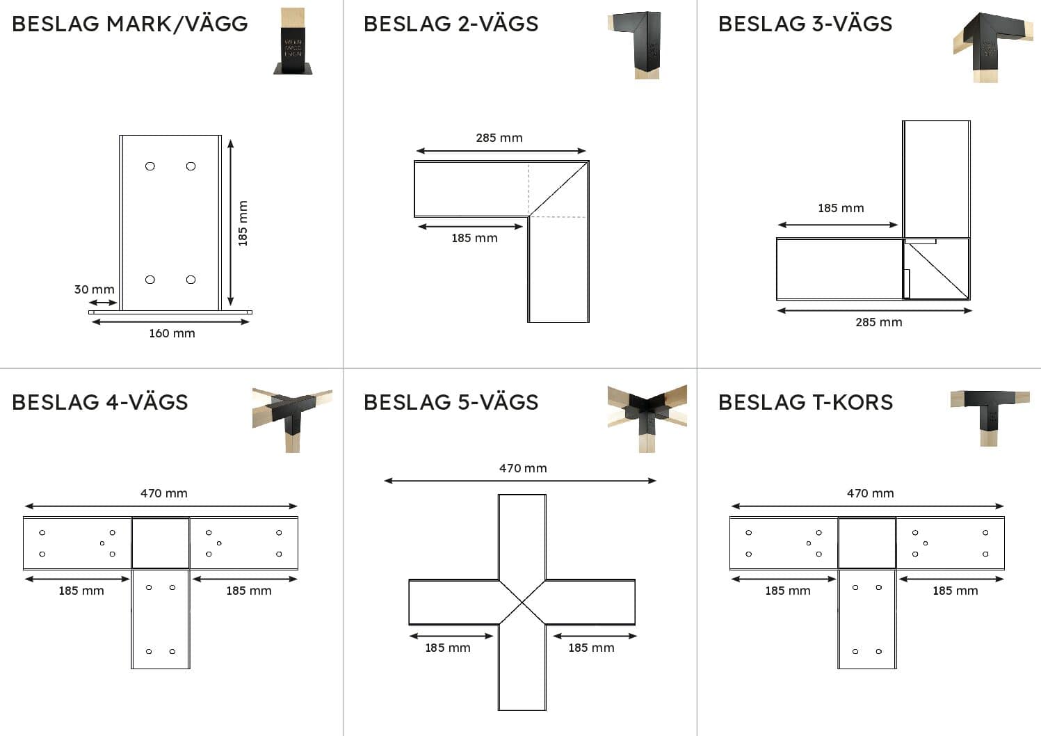 Fristående pergola, gångpergola eller väggmonterad pergola – du bestämmer! Med våra beslag monterar du enkelt din pergola. Beslagen kombinerar du med med valfritt virke 95x95mm, och kan du enkelt anpassa pergolans storlek efter ditt hems unika mått.