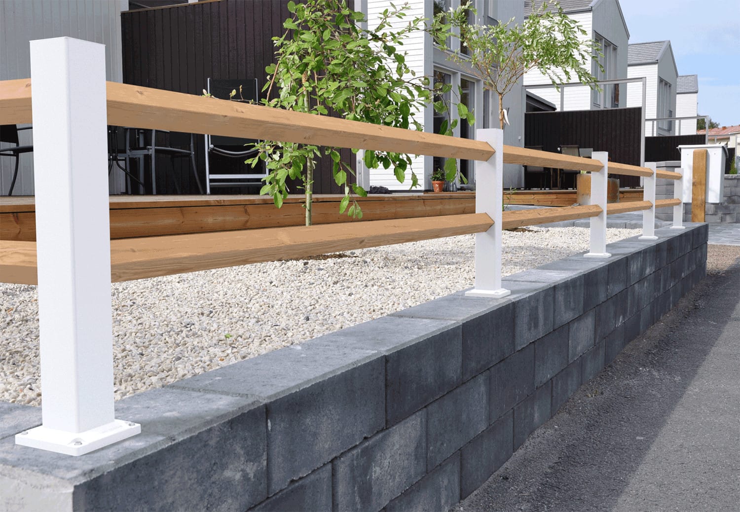 - Till sist trycks en stolphatt fast inuti stolpen för ett stilrent avslut. Önskas en överliggare används ett överliggarfäste.