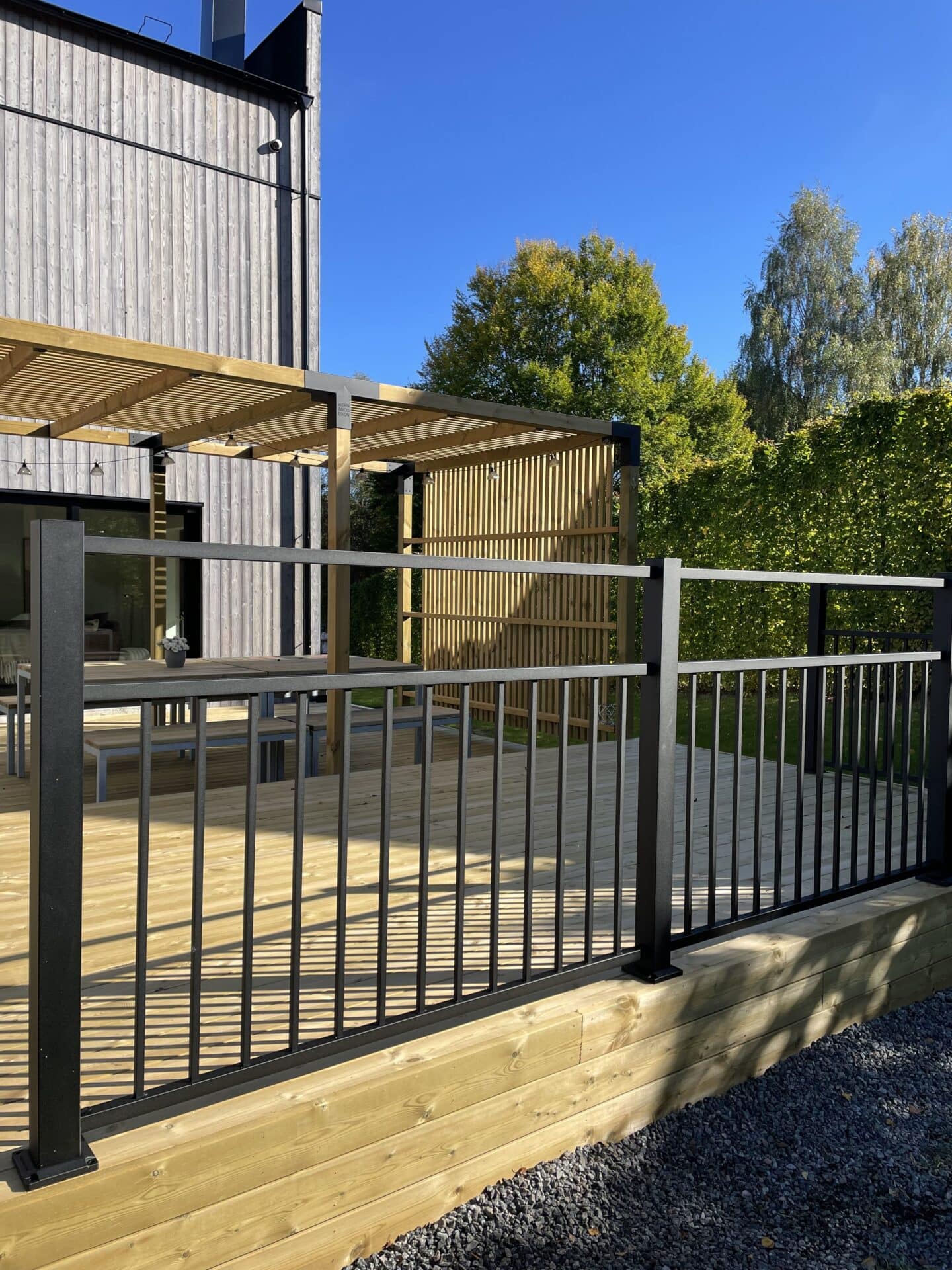 Skapa en stilren utomhusmiljö med balkongräcke Voxtorp – designat för att möta både säkerhetskrav och estetiska önskemål. Detta högkvalitativa räcke är godkänt för användning på balkonger och andra platser med högre fallhöjd, tack vare sin säkerhetshöjd på 1,10 meter. Voxtorp behöver dock inte bara monteras på balkong, utan kan såklart även användas som räcke eller staket på andra platser. Voxtorp utgör också ett högkvalitativt alternativ till smidesräcke. Med enkel montering och en stilren stomme i aluminium, blir det ett hållbart och underhållsfritt räcke som passar in i både moderna och traditionella miljöer.