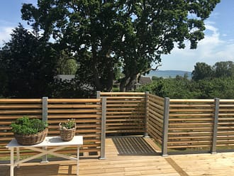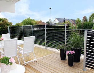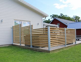 Du kombinerar Drömminge staketstolpar med 2 tums (45×45mm) träreglar som köps i valfri bygghandel. Tryckta reglar, laserade eller målade reglar, järnvitriol eller andra kiselbehandlingar - du väljer själv hur dina träreglar ska se ut och därför blir varje staket unikt! Den underhållsfria stommen ger i kombination med tryckimpregnerade träreglar ett underhållsfritt staket med lång livslängd. Hålen i Drömminge-stolparna är vridna ett kvarts varv vilket ger ett ökat skydd mot insyn samt ett unikt och karaktäristiskt utseende. Drömminge ger ett insyns- och vindskydd på hela 75%.