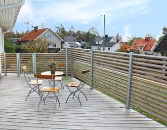 - Till sist trycks en stolphatt fast inuti stolpen för ett stilrent avslut. Önskas en överliggare används ett överliggarfäste.