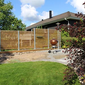 Du kombinerar Drömminge staketstolpar med 2 tums (45×45mm) träreglar som köps i valfri bygghandel. Tryckta reglar, laserade eller målade reglar, järnvitriol eller andra kiselbehandlingar - du väljer själv hur dina träreglar ska se ut och därför blir varje staket unikt! Den underhållsfria stommen ger i kombination med tryckimpregnerade träreglar ett underhållsfritt staket med lång livslängd. Hålen i Drömminge-stolparna är vridna ett kvarts varv vilket ger ett ökat skydd mot insyn samt ett unikt och karaktäristiskt utseende. Drömminge ger ett insyns- och vindskydd på hela 75%.