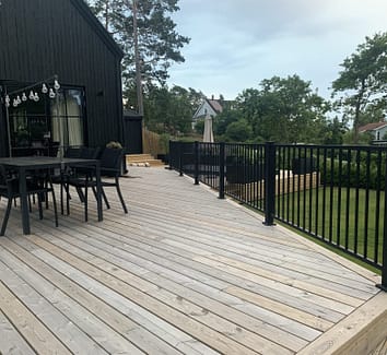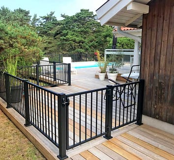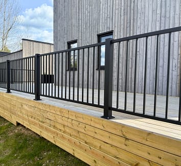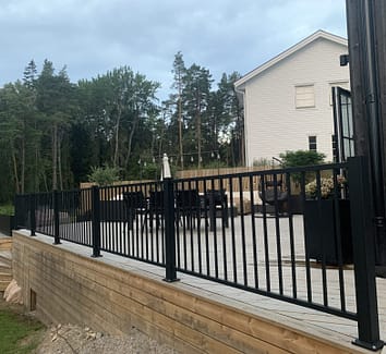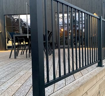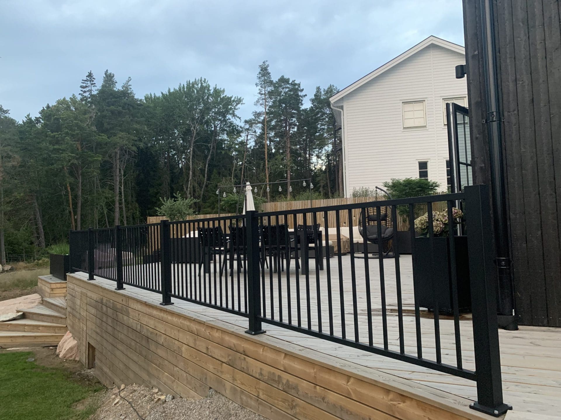 Herrestad är ett enkelt men elegant staket med stående ribbor. Då det inte är klättringsbart gör det sig extra bra som poolstaket, men kan såklart användas som både trädgårdsstaket och altanräcke.