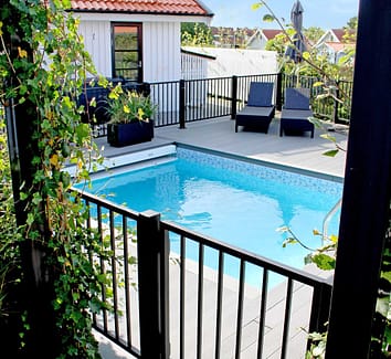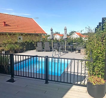 Staket Herrestad uppfyller de krav som finns på ett poolstaket. Staketet är 90 cm högt, ej klättringsbart och avståndet nedtill är även så pass lågt att barn inte kan krypa under.