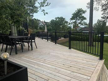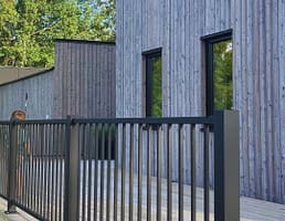 Herrestad är ett enkelt men elegant staket med stående ribbor. Då det inte är klättringsbart gör det sig extra bra som poolstaket, men kan såklart användas som både trädgårdsstaket och altanräcke.