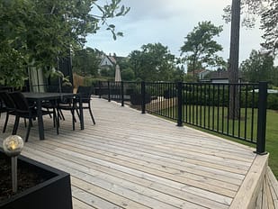Herrestad är ett enkelt men elegant staket med stående ribbor. Då det inte är klättringsbart gör det sig extra bra som poolstaket, men kan såklart användas som både trädgårdsstaket och altanräcke.
