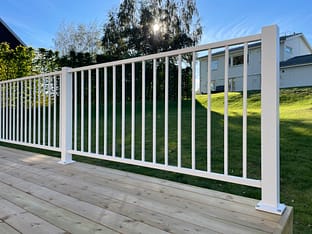 Herrestad är ett enkelt men elegant staket med stående ribbor. Då det inte är klättringsbart gör det sig extra bra som poolstaket, men kan såklart användas som både trädgårdsstaket och altanräcke.