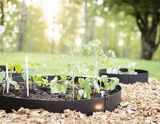 Förenkla underhållet i din trädgård med hjälp av en trädring. En trädring ramar in dina träd på ett snyggt sätt och du slipper gräs som växer in mot stammen. Trädringen är även fin att ha runt ett prydnadsgräs eller buske. Du kan också använda en hög trädring istället för en pallkrage till mindre odlingar, köksträdgården eller det lilla jordgubbslandet – möjligheterna är många. Vår höga trädring finns i tre storlekar och tre färger; galvat, svart och corten.