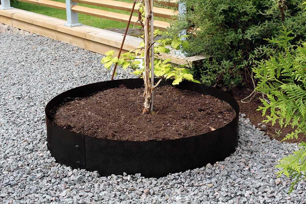 Förenkla underhållet i din trädgård med hjälp av en trädring. En trädring ramar in dina träd på ett snyggt sätt och du slipper gräs som växer in mot stammen. Trädringen är även fin att ha runt ett prydnadsgräs eller buske. Du kan också använda en hög trädring istället för en pallkrage till mindre odlingar, köksträdgården eller det lilla jordgubbslandet – möjligheterna är många. Vår höga trädring finns i tre storlekar och tre färger; galvat, svart och corten.