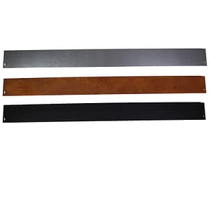 Vår låga rabattkant finns i tre färger; galvat, svart och trögrostande corten. Förzinkad plåt ger ett bra skydd mot rost och lacken är en väderbeständig pulverlack för utomhusbruk. Rabattkanten i corten får sin rostiga yta först efter en tid utomhus. Vi rekommenderar att den svartlackerade kanten böjs varsamt och ej i skarpa 90 graders hörn. Detta då risken finns att färgen spricker.