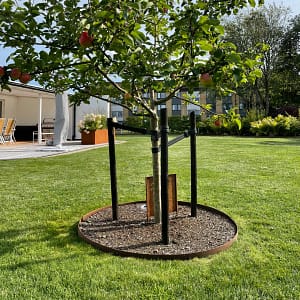 Förenkla underhållet i din trädgård med hjälp av en trädring. En trädring ramar in dina träd på ett snyggt sätt och du slipper gräs som växer in mot stammen. Trädringen är även fin att ha runt ett prydnadsgräs eller buske. Du kan också använda en låg trädring istället för en pallkrage till mindre odlingar, köksträdgården eller det lilla jordgubbslandet – möjligheterna är många. Vår låga trädring finns i tre storlekar och tre färger; galvat, svart och corten.