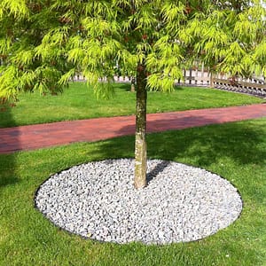 En låg trädring är en liten detalj som gör stor skillnad! En distinkt avgränsning runt träd, buskar, gräs eller odlingar har stor betydelse för trädgårdens helhetsintryck.