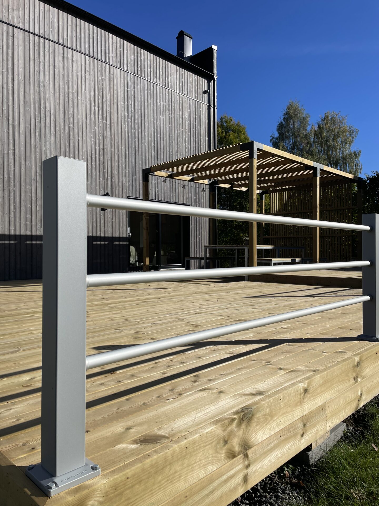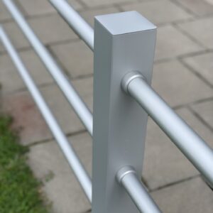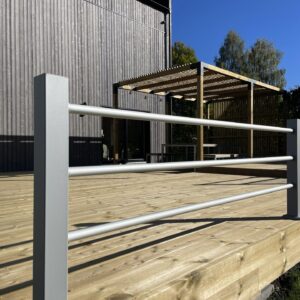 Stolparna kombineras med anodiserade aluminiumrör, antingen i svart- eller naturanodisering. Rören säljs i tre- eller fempack i längder om 180 cm. Till rören medföljer sex eller 10 stycken låsbeslag och skruv. Låsbeslagen träs på rören och skruvas fast intill stolpen, och fungerar på så sätt som en spärr som låser fast rören.