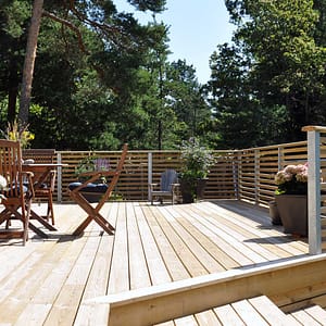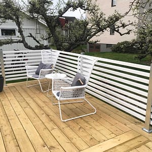 Nydala-stolpen kombineras med 2 tums (45×45mm) träreglar som är standard i bygghandeln. Tryckta reglar, laserade eller målade reglar, järnvitriol eller andra kiselbehandlingar - du väljer själv hur dina träreglar ska se ut och därför blir varje staket unikt! Den underhållsfria stommen ger i kombination med tryckimpregnerade träreglar ett underhållsfritt staket med lång livslängd. Nydala ger ett vind- och insynsskydd på 50%.