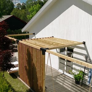 Observera att du själv kompletterar med virke. Rekommenderad maxbredd per pergolasektion är 3,60m.