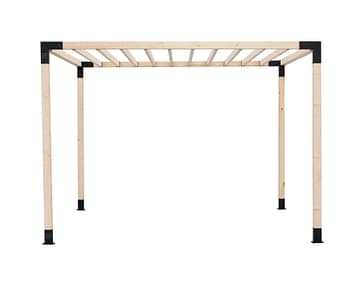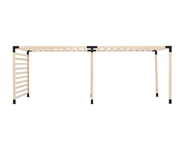 Observera att du själv kompletterar med virke. Rekommenderad maxbredd per pergolasektion är 3,60m.
