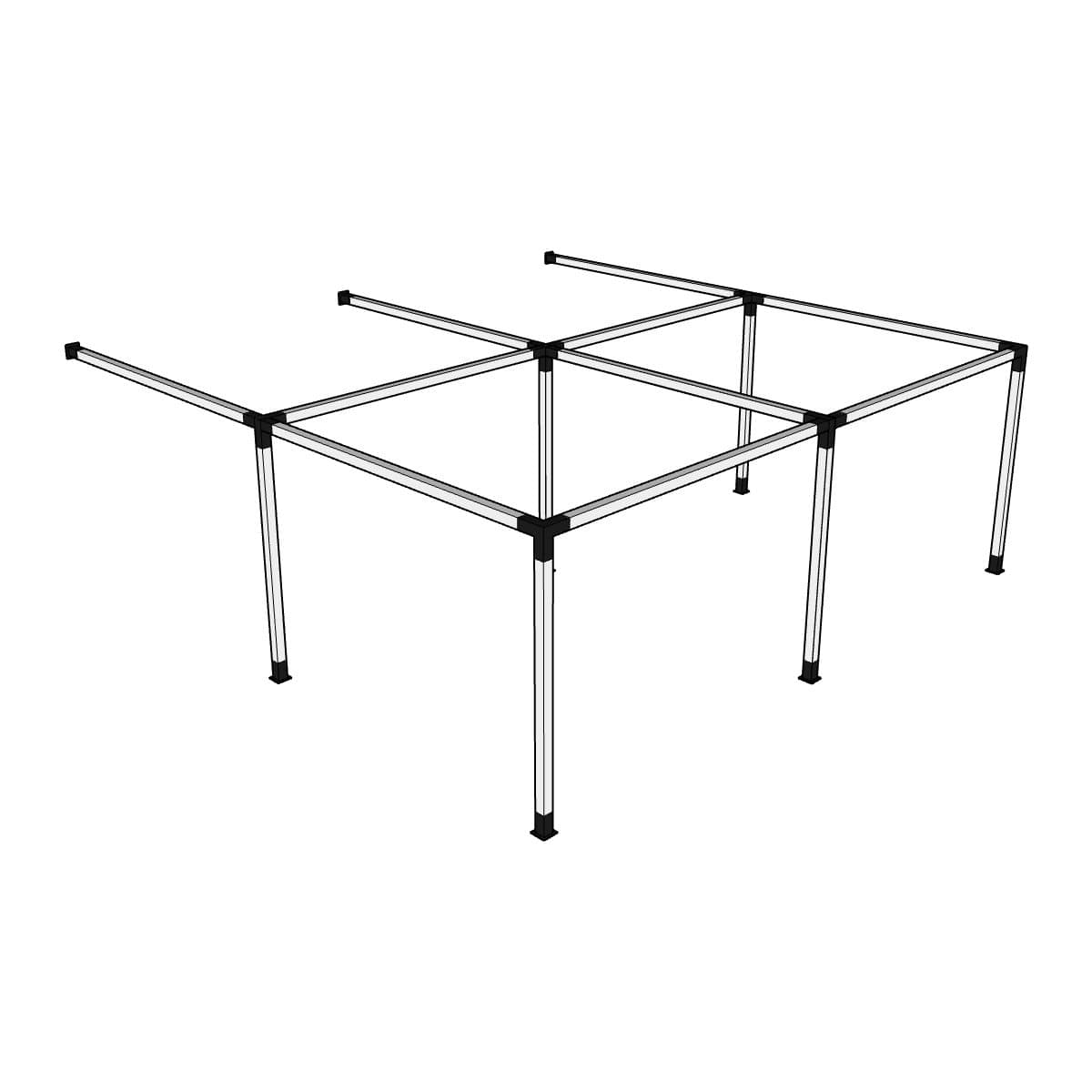 Observera att du själv kompletterar med virke. Rekommenderad maxbredd per pergolasektion är 3,60m.