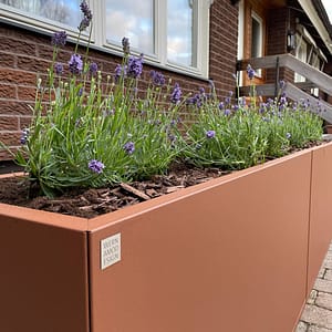 – Cortenlack – en lack som liknar cortenplåt. Den stora fördelen med cortenlack gentemot vanlig cortenplåt är att du slipper oroa dig för rostfläckar som lätt kan missfärga underlag. Dessutom är boxen redan ”färdigrostad” när du får den! Perfekt även för den som vill placera corten inomhus.