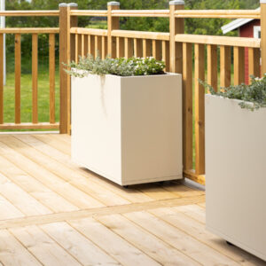 Alla boxar kan fås med dolda hjul vilket ger Plant Box en svävande effekt, där den genomtänkta designen verkligen kommer till rätta. Hjulen förenklar även förflyttning av boxen. Plant Box levereras som ett platt paket och montering sker mycket enkelt med medföljande skruv.