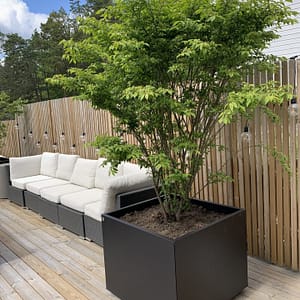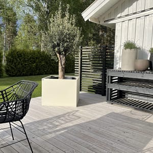 Plant Box Kub är en omtyckt kvadratisk box som passar perfekt att använda som kruka för växter, prydnadsgräs eller större träd och buskar. Den stilrena boxen är tillverkad i Småland i material som tål vårt svenska klimat. Den finns i fyra färger; cortenlack, sand, svart och silvergrå. Denna Plant Box har måtten L80xB80xH60 cm. Önskar du hjul till din Plant Box Kub 80x80x60 behövs 2 st 4-pack hjul.