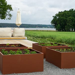 – Cortenlack – en lack som liknar cortenplåt. Den stora fördelen med cortenlack gentemot vanlig cortenplåt är att du slipper oroa dig för rostfläckar som lätt kan missfärga underlag. Dessutom är boxen redan ”färdigrostad” när du får den! Perfekt även för den som vill placera corten inomhus.