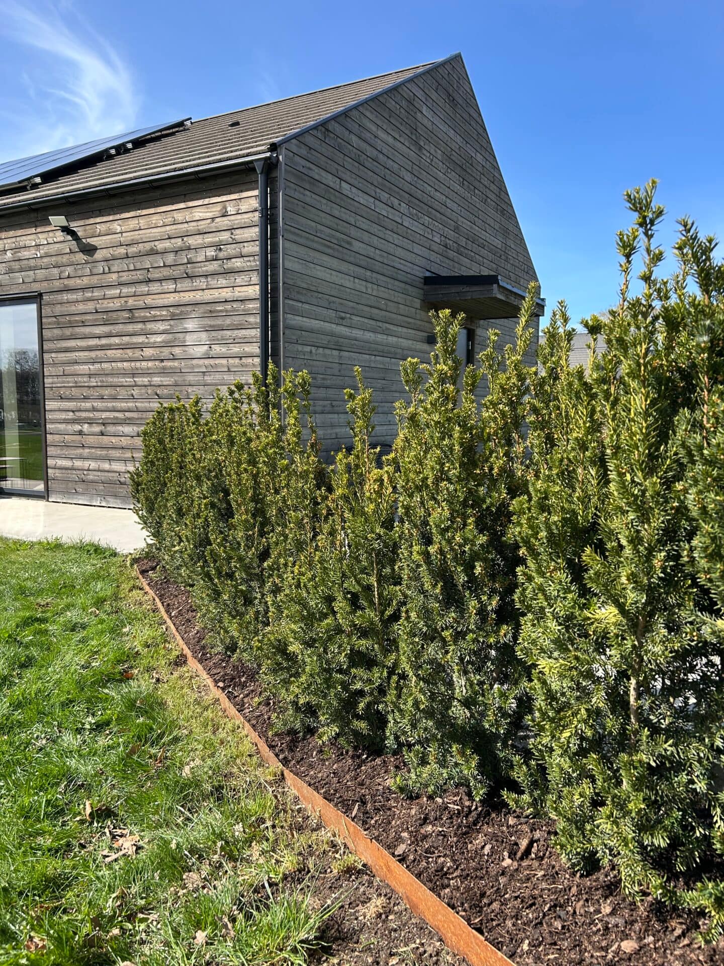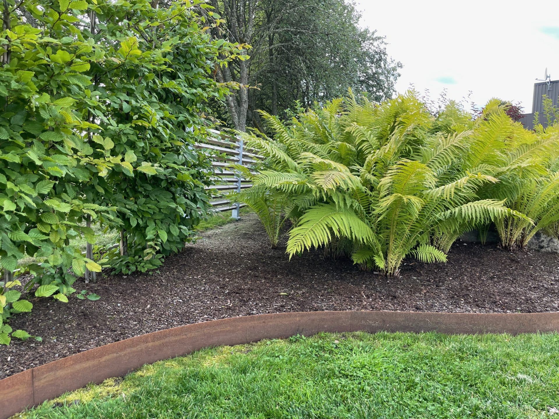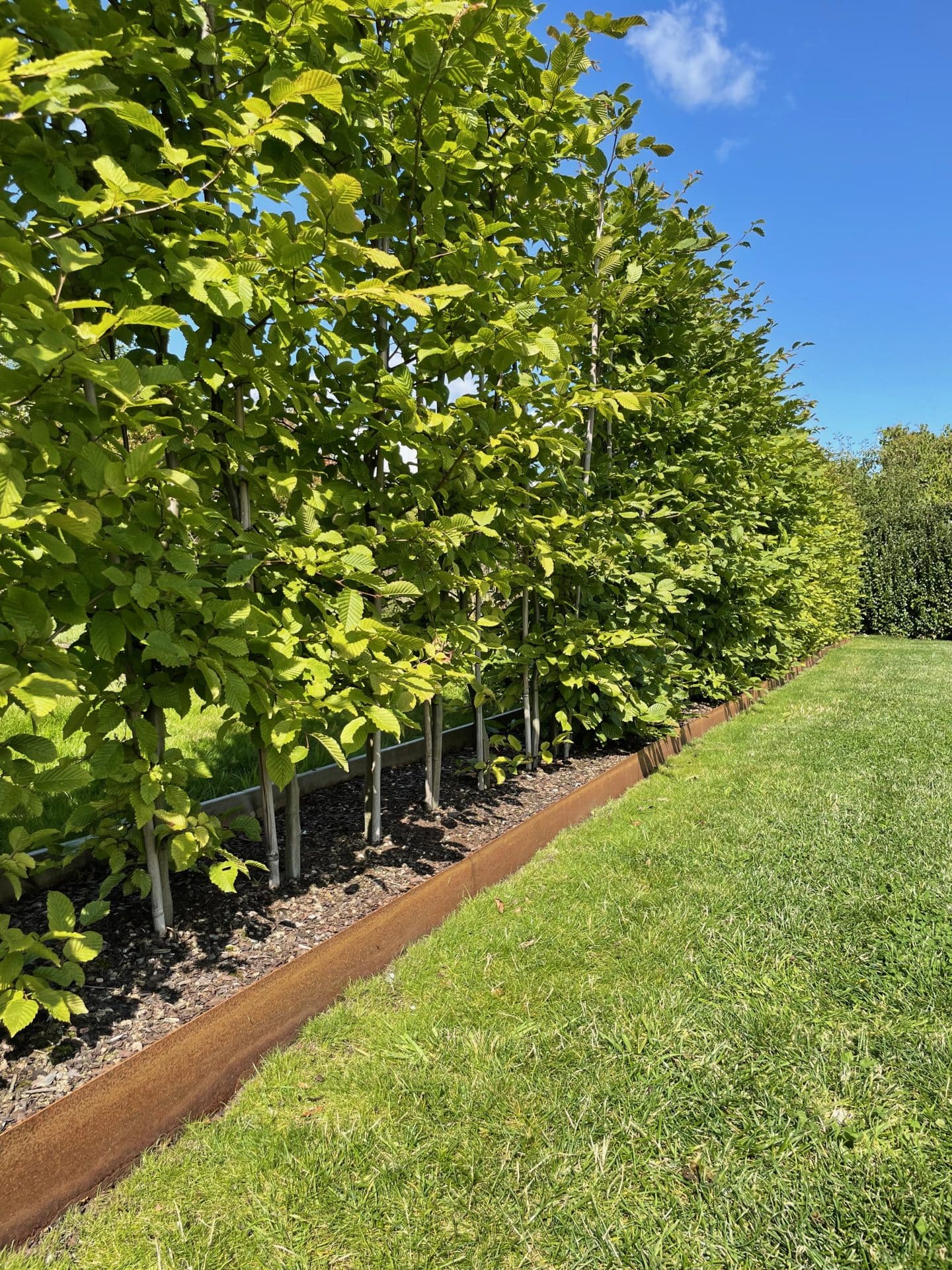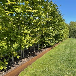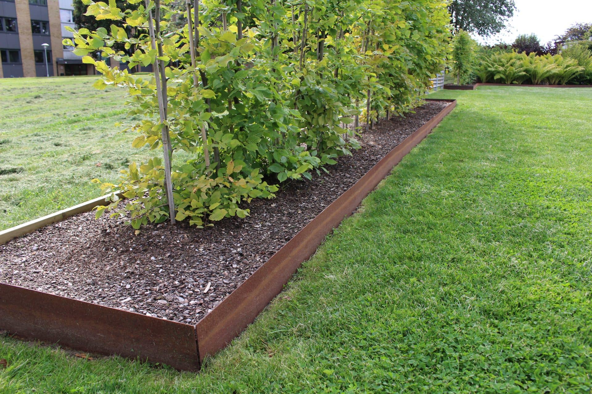 Kraftig rabattkant av 2 mm rosttrögt cortenstål. Plåtarna levereras med skarvplåt och bult, vilket ger en snygg sammanfogning utan överlappning. Plåtarna som finns i två olika höjder, 19 samt 30 cm, är enkla att forma och böja. Cortenplåt är trögrostande och står sig mycket bra. Den rostiga färgen kommer först efter en tid utomhus.