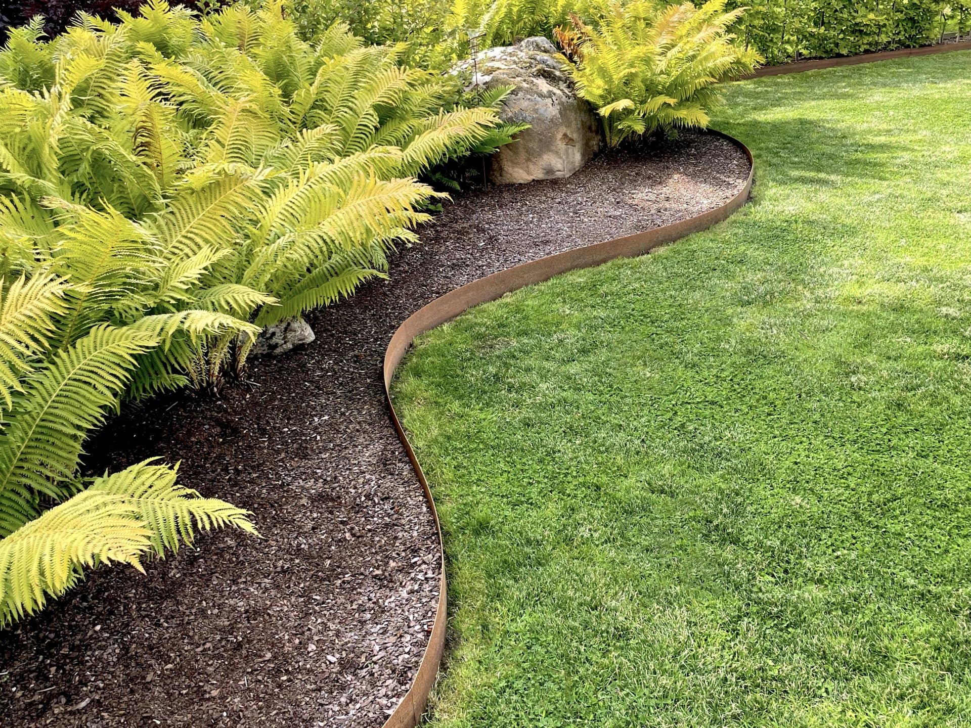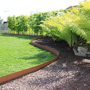 Förgyll din trädgård med rabattkanter av cortenplåt, arkitekternas favoritmaterial. Roströd corten blir en fin kontrast mot det gröna i din trädgård. Denna rabattkant som finns i två olika höjder är en kraftig kant av cortenplåt av hög kvalitet. Detta är rabattkanten som trädgårdsmästare föredrar att arbeta med och som ger en stadga som även går att asfaltera mot.