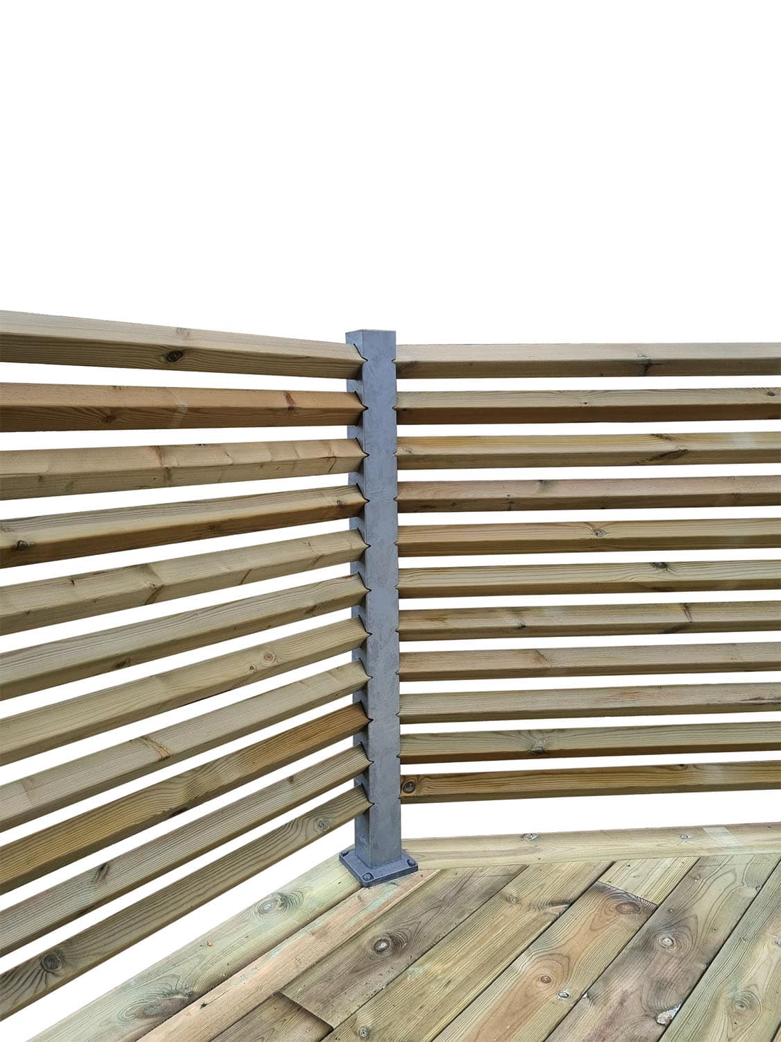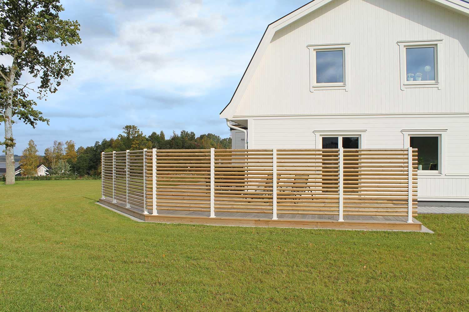 Du kombinerar Drömminge staketstolpar med 2 tums (45×45mm) träreglar som köps i valfri bygghandel. Tryckta reglar, laserade eller målade reglar, järnvitriol eller andra kiselbehandlingar - du väljer själv hur dina träreglar ska se ut och därför blir varje staket unikt! Den underhållsfria stommen ger i kombination med tryckimpregnerade träreglar ett underhållsfritt staket med lång livslängd. Hålen i Drömminge-stolparna är vridna ett kvarts varv vilket ger ett ökat skydd mot insyn samt ett unikt och karaktäristiskt utseende. Drömminge ger ett insyns- och vindskydd på hela 75%.