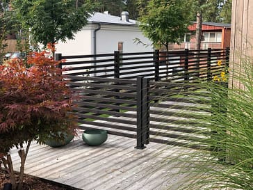 Nydala-stolpen kombineras med 2 tums (45×45mm) träreglar som är standard i bygghandeln. Tryckta reglar, laserade eller målade reglar, järnvitriol eller andra kiselbehandlingar - du väljer själv hur dina träreglar ska se ut och därför blir varje staket unikt! Den underhållsfria stommen ger i kombination med tryckimpregnerade träreglar ett underhållsfritt staket med lång livslängd. Nydala ger ett vind- och insynsskydd på 50%.