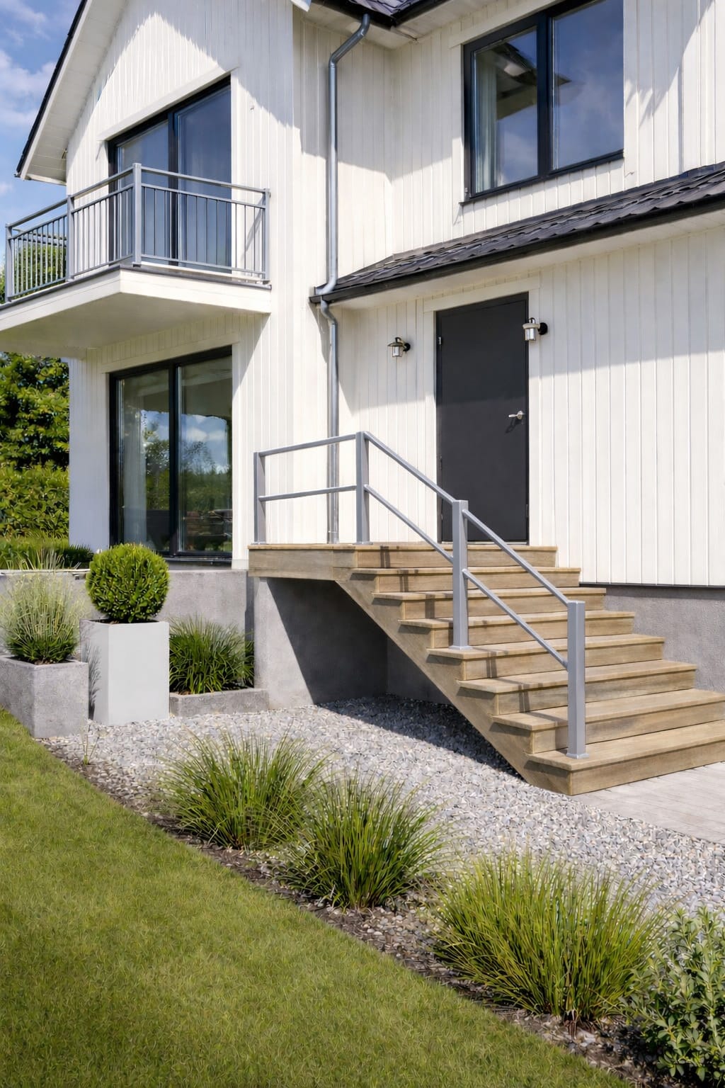 Ett trappräcke i aluminium och förzinkade stålrör är ett utmärkt val för utomhusbruk. Till skillnad från trappräcke i trä kräver Karlsdal minimalt underhåll och behåller både funktion och utseende under lång tid.