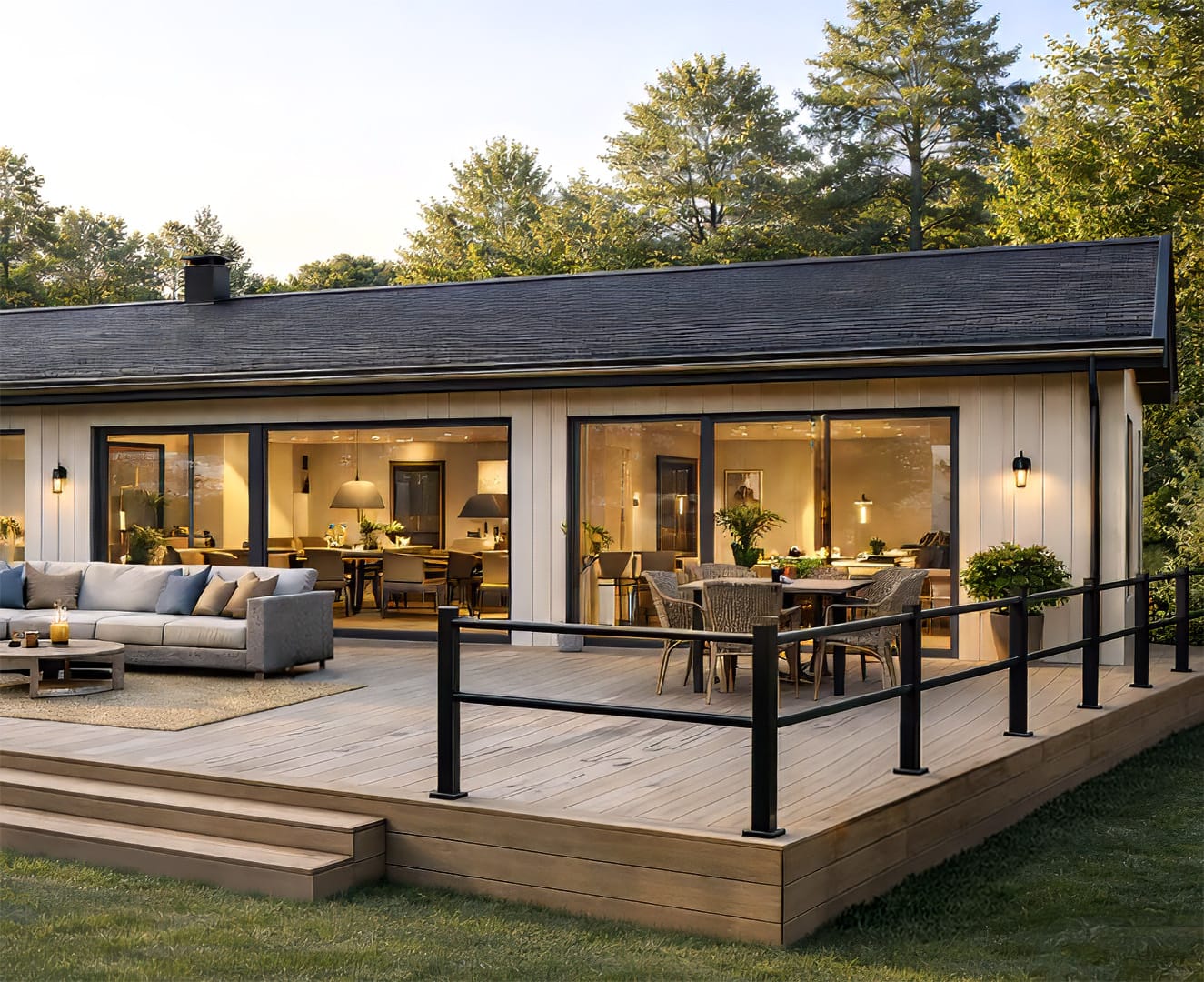 Trappräcket fungerar både som skyddsräcke och som ledstång/handledare och är kompatibelt med staket Karlsdal och Herrestad. Det gör det enkelt att skapa en sammanhållen stil runt altan, uteplats och tomt.