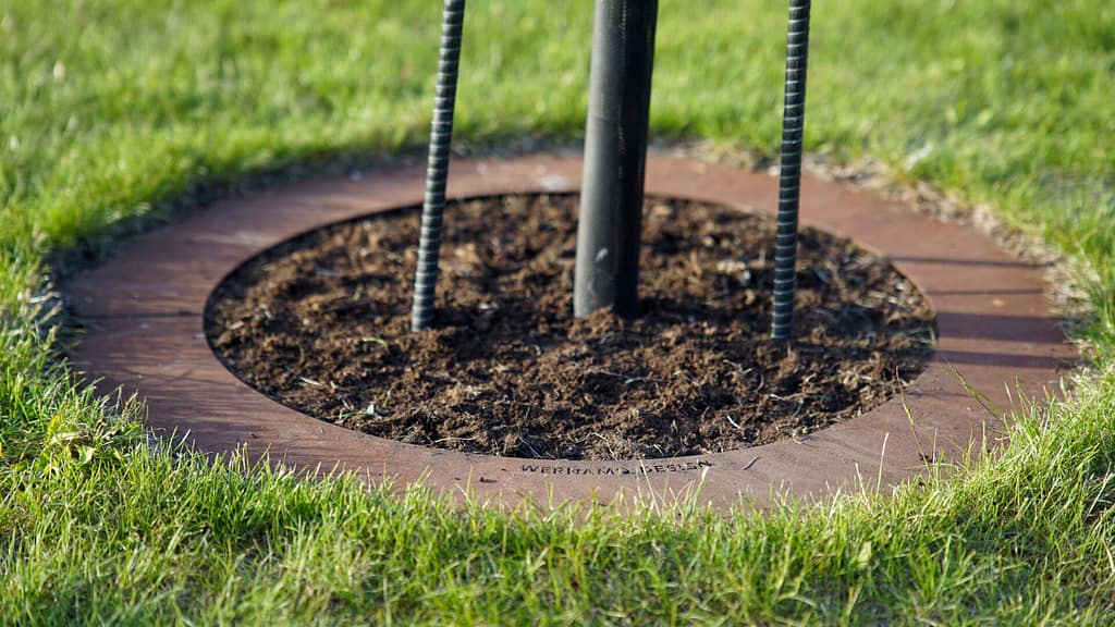 Robotringen underlättar gräsklippningen och blir ett smycke runt dina träd.