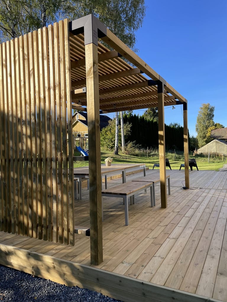 Välj ribbvägg till din pergola för att skärma av och skapa en privat och ombonad plats.