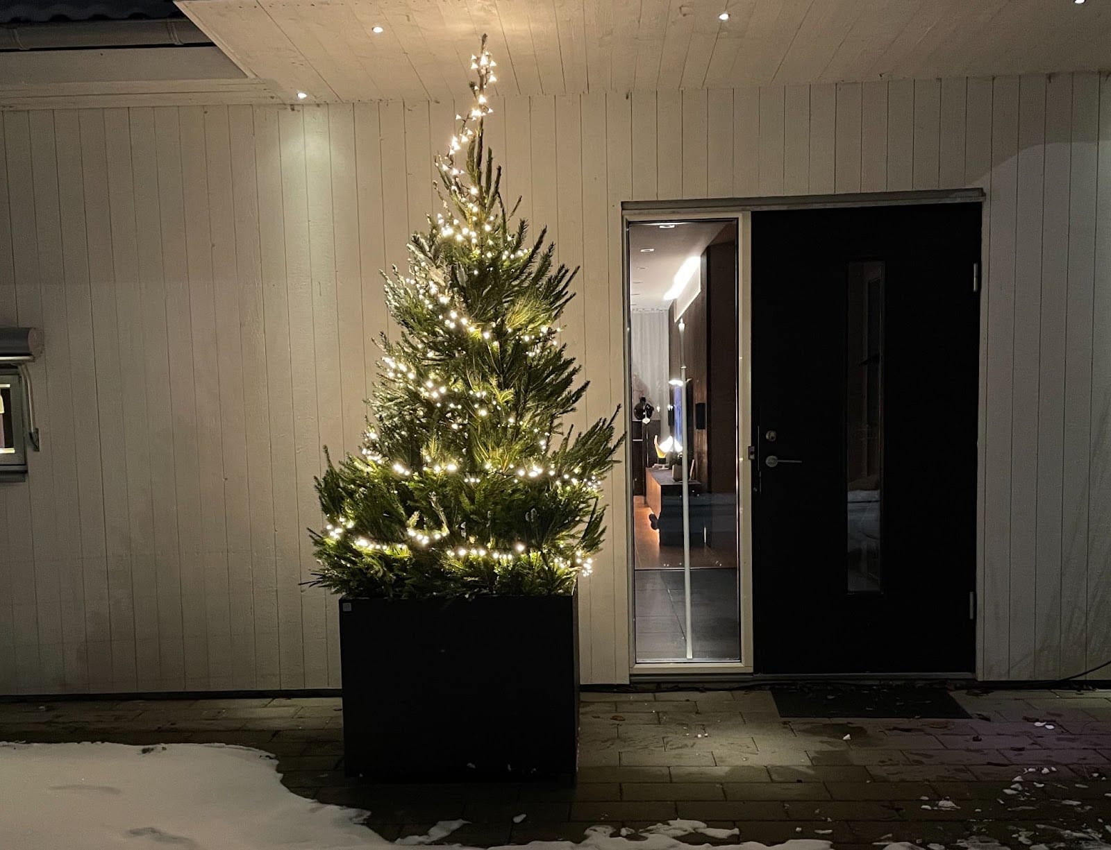 Under vintern är våra planteringskärl perfekta att använda till julpynt i trädgården – Plant Box Kub 2 fungerar exempelvis utmärkt som julgransfot.